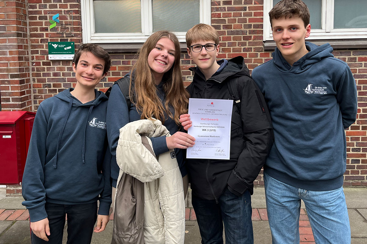 Das Hamburger Schulschachpokal-Turnier ist das Qualifikationsturnier für die deutschen Schulschachmeisterschaften – entsprechend hoch war das spielerische Niveau. Wir traten als Schach-AG, ergänzt durch weitere Spieler, in zwei Wettkampfklassen mit insgesamt zehn Teilnehmern an. In der Wettkampfklasse 3 spielten Leonie Finkensiep, Jonathan Hanssen, Anton Rollin und Karl Stück. In der Wettkampfklasse 2 gingen Anton Hügelmann, Kristian Michels, Quan Pham, Johannes Rollin, Marc Schneider und Claas Trimpop an den Start. Auch wenn die Konkurrenz sehr stark war, konnten wir gut mithalten und erreichten in beiden Wettkampfklassen jeweils den 7. Platz – ein Ergebnis, auf das wir stolz sein können.